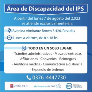 A partir del lunes 7 de agosto del 2.023 el área de Discapacidad del IPS [...]